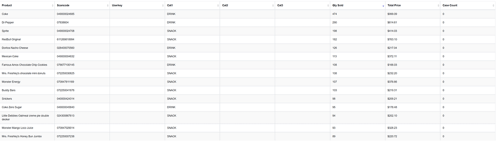 From DFW Vending’s data, the top five best-selling products include: